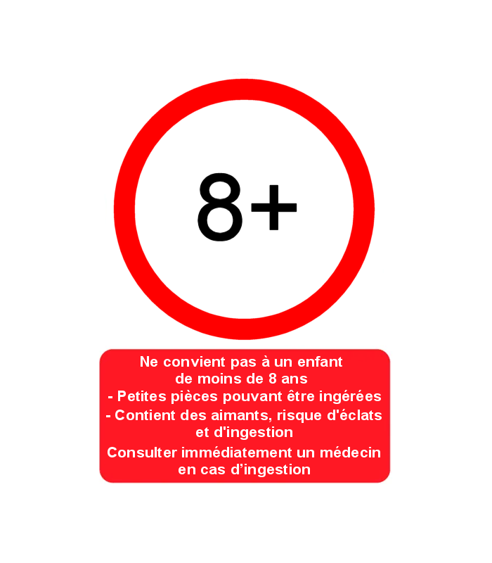 En raison de la présence de petites pièces et d'aimants, le Neokibo ne convient pas à un enfant de moins de 8 ans.