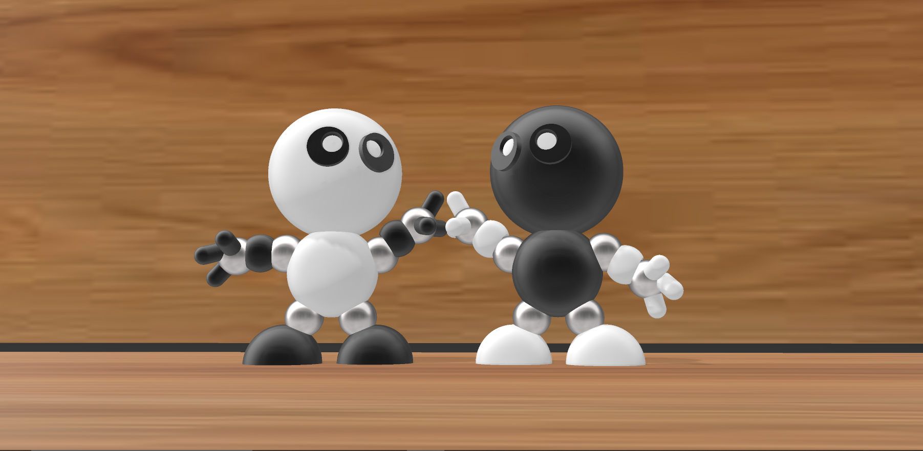 Tu peux même mettre ses pieds à la place des mains, les doigts sur les jambes ou ajouter des pièces pour agrandir ses bras, etc..